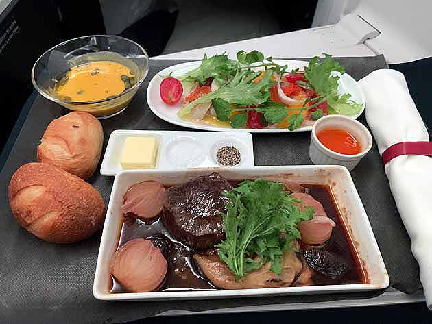 JAL安定の機内食で夕食はとても美味しくいただきました。