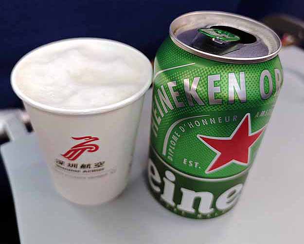 珍しくエコノミークラスでもハイネケンビールがありました。