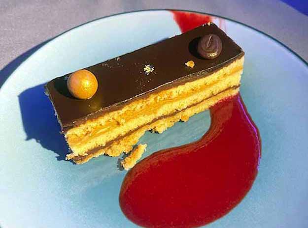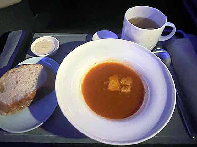 深夜の便なのでローストトマトとバジルスープとパン、烏龍茶、デザートにオペラ(ケーキ)にしました。