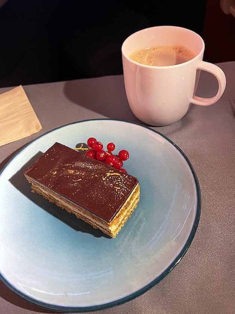 デザートは、オペラケーキと香港ミルクティー。